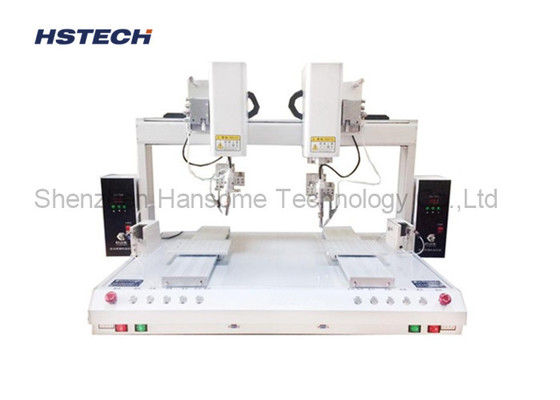 The 8 axis automatic soldering machines is a double 4 axis soldering machine, which add another 4 axis robot based on a 4 axis soldering robot, which greatly improves the efficiency, also make the soldering no dead angle, suitable for spot welding and drag welding, such as PCB, frequency divider,etc.